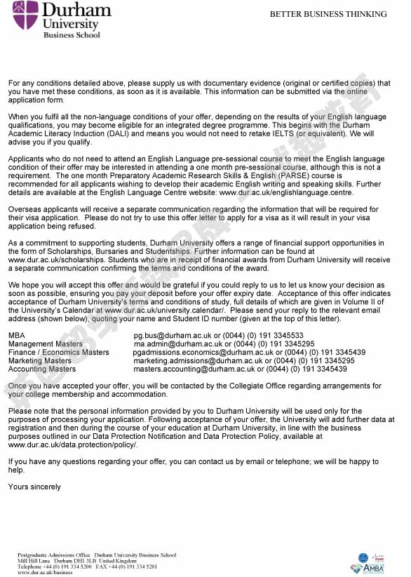 申请背景:PSU经济学专业;收到offer:杜克大学-Master of Management Studies: Foundations of Business program
