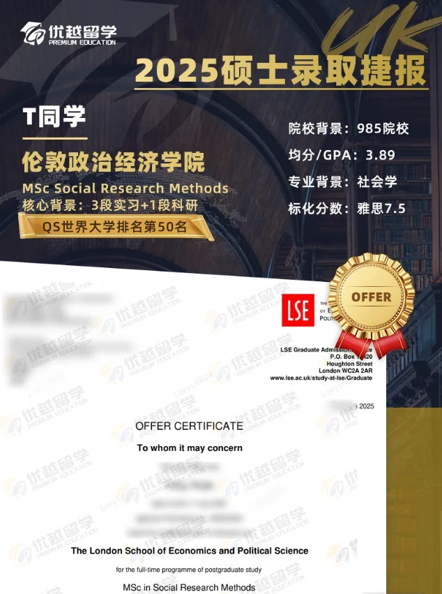以上是【本期offer榜单:2025英国留学硕士offer:【伦敦政治经济学院LSE】社会研究方法】相关的全部内容,查看更多【offer榜单】、【名校案例】相关资讯可前往【优越留学】首页!世界名校申请,找优越留学!选校定校、申请规划、文书写作、背景提升、方案定制一套搞定!点击【在线咨询】,优越留学顾问24h在线为您一对一解答!