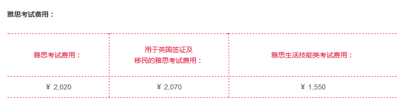 雅思考试报名费:雅思考试的费用可以说是年年都在涨,2020年最新费用为2020元,如需配语言课程,需报考UKVI雅思,费用为2070元。(选择海外考雅的同学还要算一下赴海外的住宿、交通费用等)