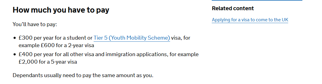· 医疗附加费(IHS):300英镑(可在线支付)--如签证被拒,医疗附加费可退