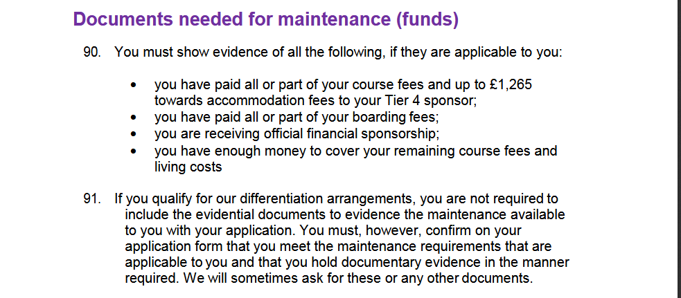 说明:用来申请Tier 4签证的存款金额是需要存1年学费+9个月生活费,如果学费已经全部交清,只需存9个月的生活费即可。按照英国移民局的要求,伦敦地区1个月的生活费约为£1,265,9个月则约为£11,385。外伦敦地区1个月的生活费约为£1,015,9个月则约为£9,135。