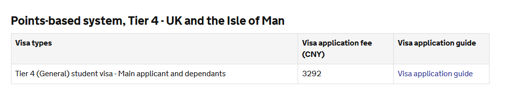 英国留学签证(Tier4学生签证):3292元(可在线支付)